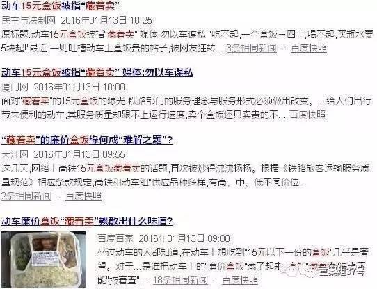 高铁列车“15元盒饭藏着卖”也一度成为热门话题。网络截图
