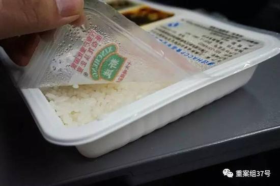 乘客打开高铁列车盒饭食用。网络图片