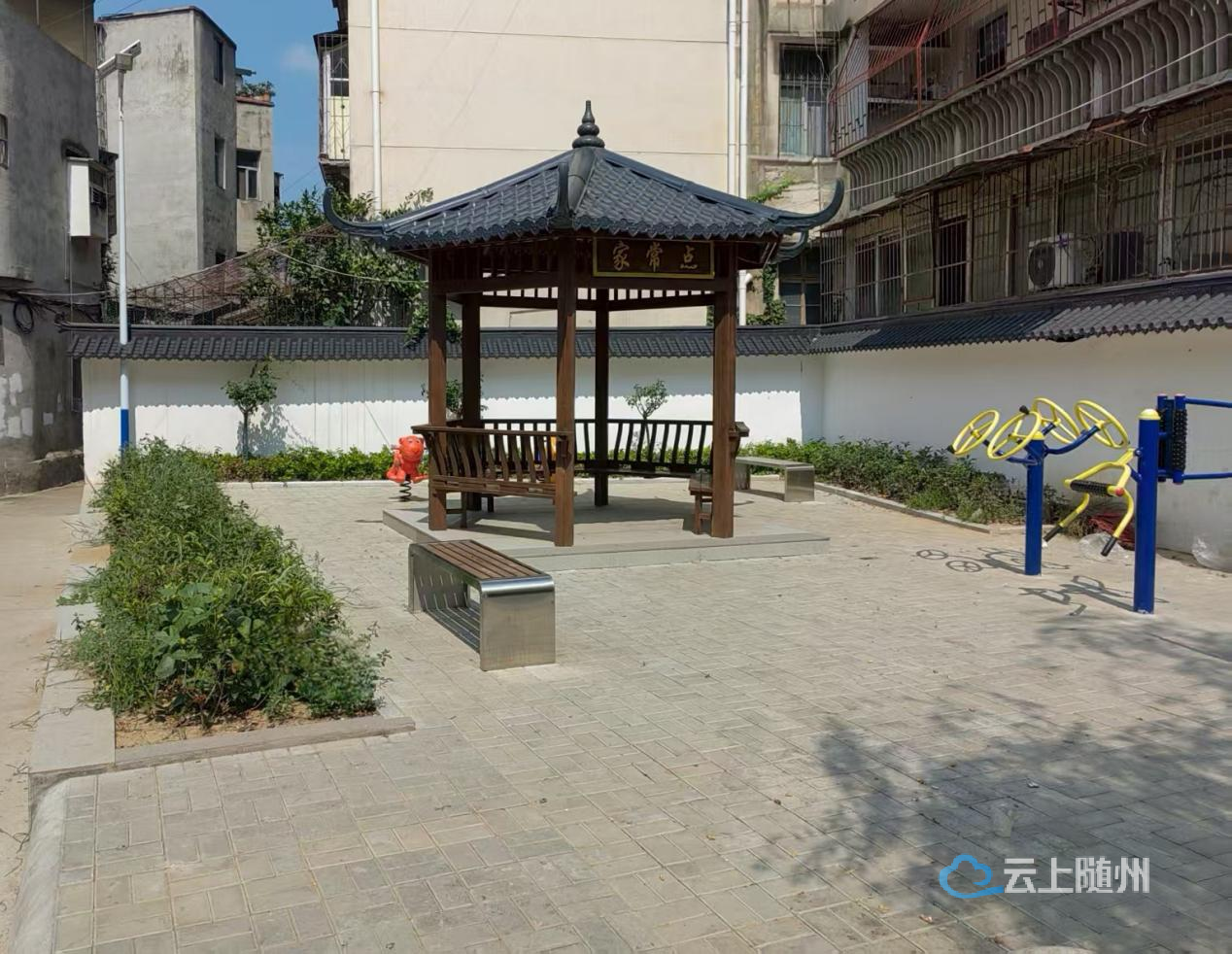 针对群众发出的呼声,通津桥社区迅速启动"微更新"计划,联合西城街道城建办、居民代表组成专项调研小组。一周内连续召开3场"板凳会",走访商户23户,收集到58条改造建议。从绿植品种选择到健身器材配置,从排水系统改造到夜间照明方案,每个细节都经过反复商讨。今年6月,这块100平方米的边角地迎来蜕变:大理石地砖取代了泥土地面,灌木丛形成绿色屏障,1座仿古木亭、2组休闲座椅、1套健身器材有序分布。特别增设的景观照明,让夜间活动的居民安全感倍增。"以前经过这里都要捂鼻子,现在每天带孙子下来玩两个小时。"推着婴儿车的李阿姨笑着说。“口袋公园”的建成不仅改善了人居环境,更让周边马路菜场的商户直接受益。"以前顾客买完菜转身就走,现在常有人坐在长椅上休息,顺便多买些蔬菜。"菜场摊主老张介绍。