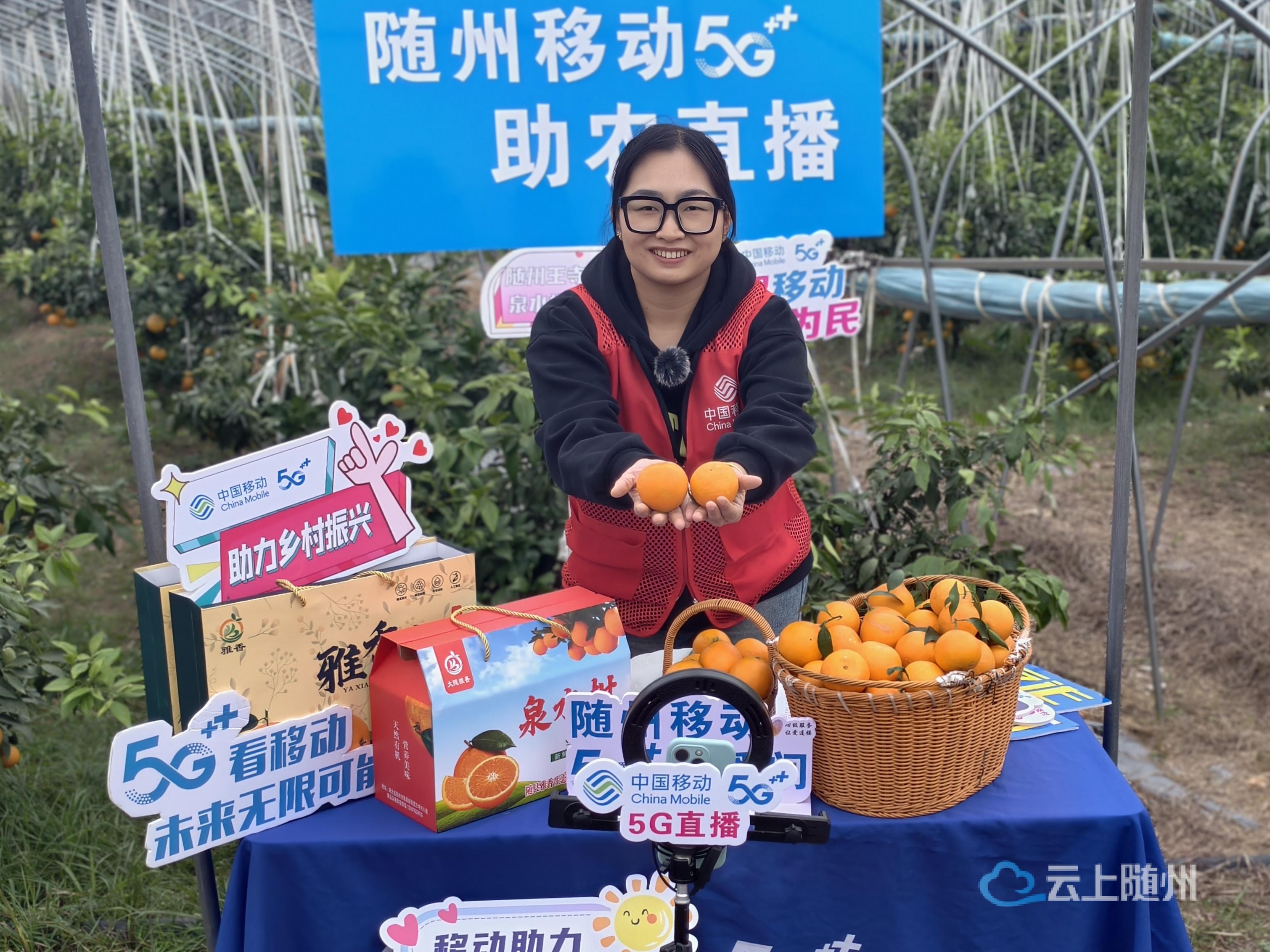 “家人们看,这果子刚从树上摘下来,还带着露水!” 直播里,刘大叔跟着志愿者教的方法,当场剥开一个泉水柑,汁水顺着指缝往下滴,评论区瞬间被 “想要”“怎么买” 刷屏。随州移动还在直播间搭起了 “福利桥”:准备了 5 斤、10 斤的现摘果包,全是直播间专属福利价;建立“5G 助农福利群”粉丝群,进群的朋友还能抽奖领 3-10G 流量,不少网友连说 “买果子还得流量,太贴心!”