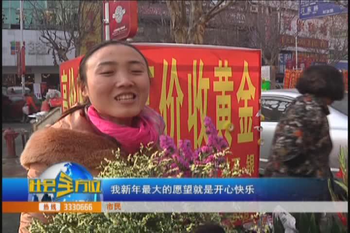 【采访】市民:我新年最大的愿望就是开心快乐,我的生意兴隆,同时我也希望我的花草大卖,希望我们每个人的生活都像花儿一样的美好鲜艳。 希望我们大家,都来我们随州,建设这美好的家园,把随州乱丢垃圾(情况改善),提高自己的素质,说话文明,遇事让一步,建立和谐的社会最好。
