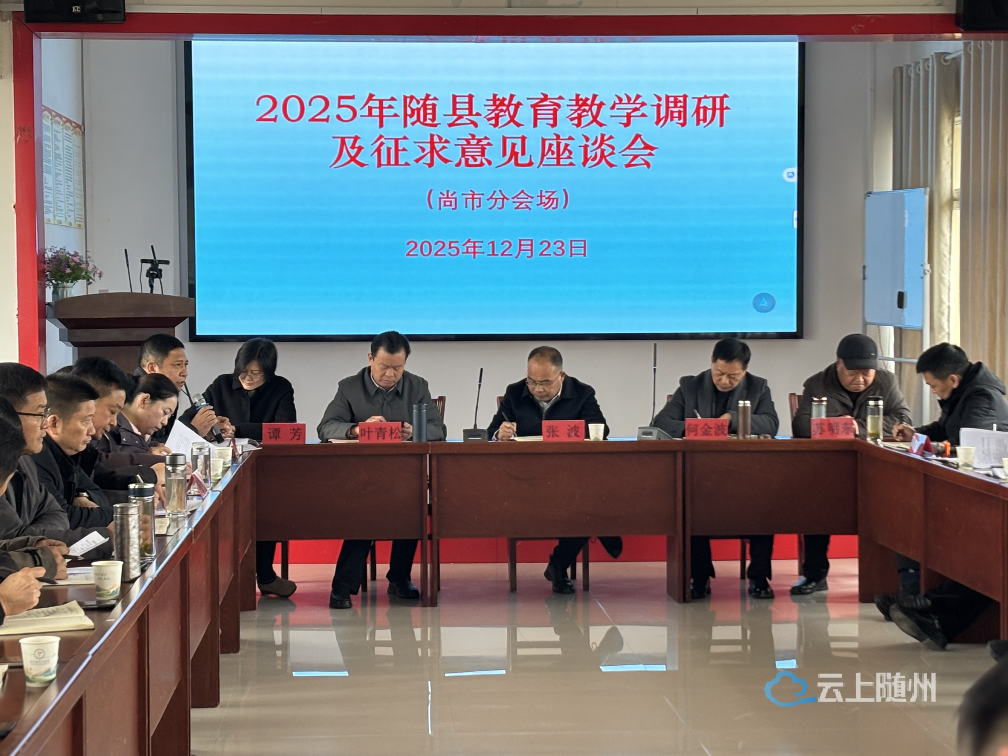 12月23日下午,随县教育局党委组织的2025年教育教学调研及征求意见座谈会在尚市镇中心学校召开。本次座谈会以“聚焦现状、提质增效、深耕新教育”为主题,厉山、新街等乡镇及炎帝学校等校代表齐聚,共商随县教育发展。