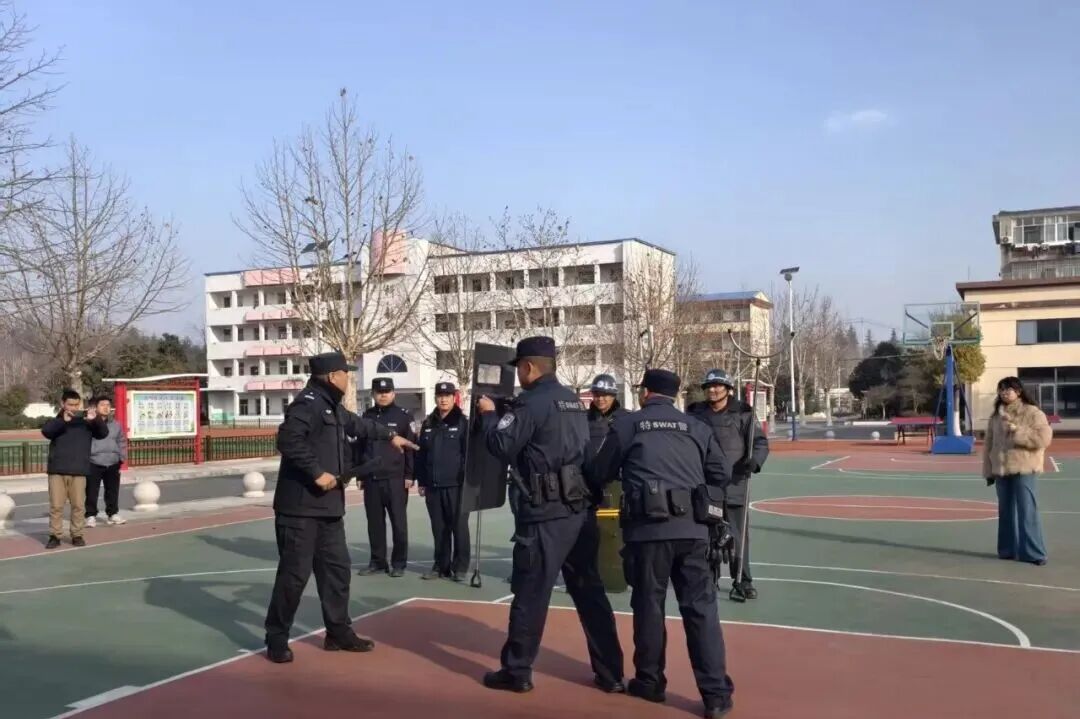 为进一步强化校园安全防范能力,提升校园安保人员应急处置水平,1月9日,何店派出所联合反恐怖和巡特警大队,深入何店镇初级中学开展校园安保应急演练活动,为全校师生的安全保驾护航。