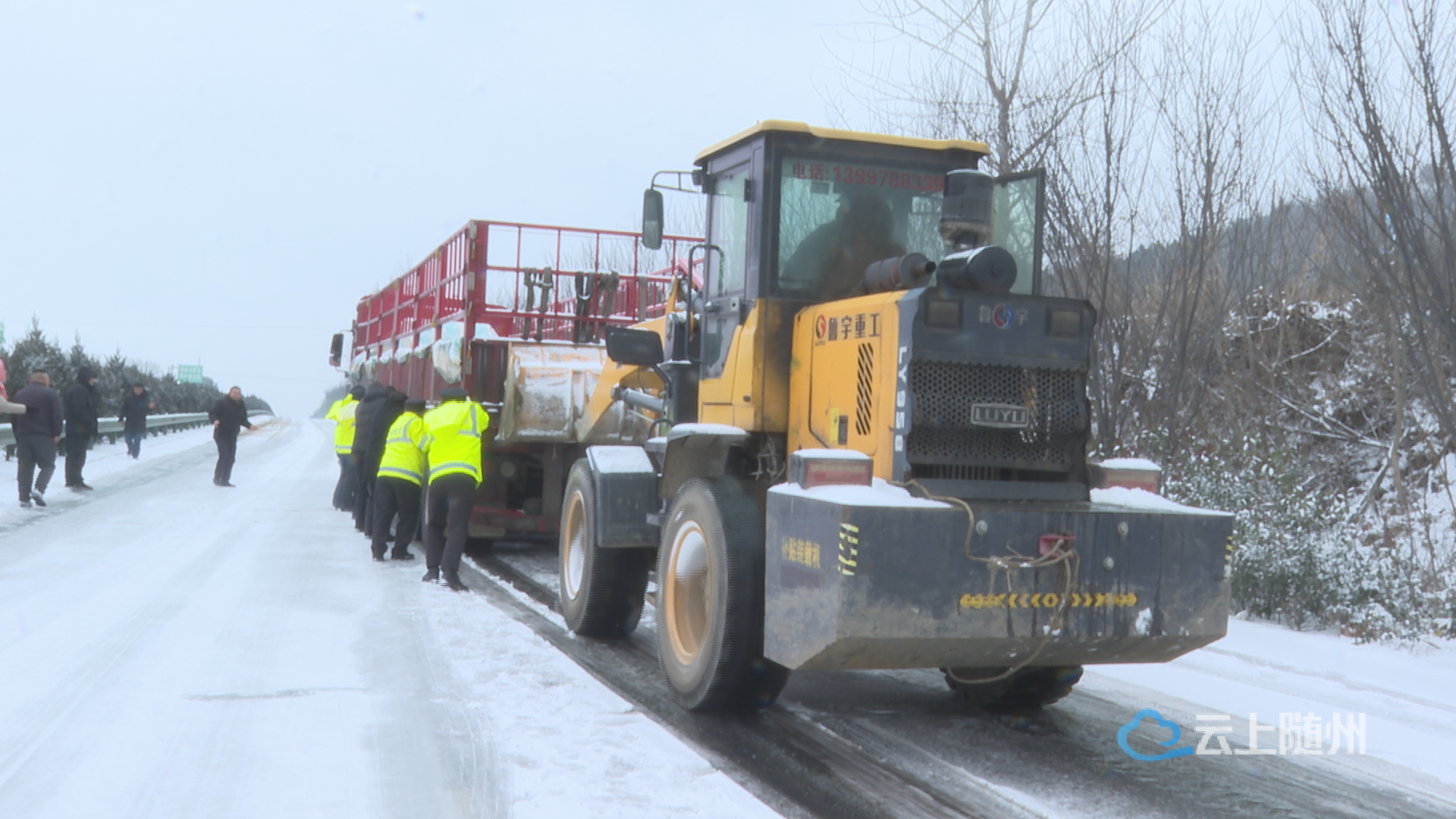 正在沿线巡查的广水交警、交通部门发现情况后,第一时间调运融雪剂,在路面泼洒融冰,同时调运机械车开展铲冰除雪作业。