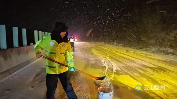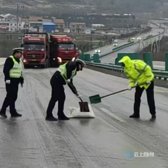 19日风雪夜里,应山交管中队全员上路巡逻,当好“前哨”尖兵。当发现210省道骆店、陈巷4座桥梁路面结冰,关庙大桥、油榨桥坡道结冰,应山城区6座桥路面结冰,该中队立即联动路政部门撒盐融冰。20日清晨,应山交管中队联动路政部门再次对应山城区5处长坡、隧道结冰路段撒盐,确保城区主干道畅通。