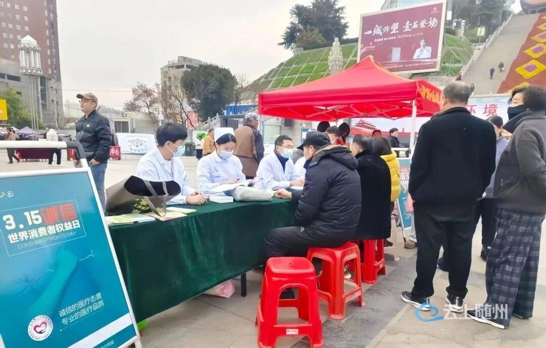 广水市第二人民医院也积极参与此次活动,组织内科、外科、中医科等医疗骨干组成志愿服务团队,在广场开展以“诚信医疗、品质服务”为主题的大型义诊。医护人员为过往市民提供免费血压血糖检测、常见病问诊、慢性病管理等一站式服务,用专业的诊疗和暖心的态度赢得了现场市民的一致认可。