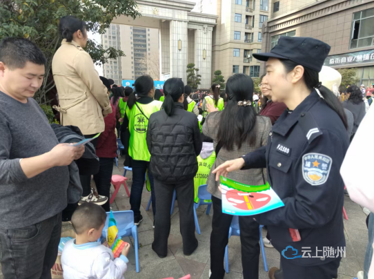 3月27日,随州市曾都区南郊街道柳树淌幼儿园举办运动会,南郊派出所民辅警借此契机,走进校园开展“扫黄打非”、反诈、反邪、禁毒等安全宣传活动,为参加运动会的孩子和家长们送上一堂生动的安全课。