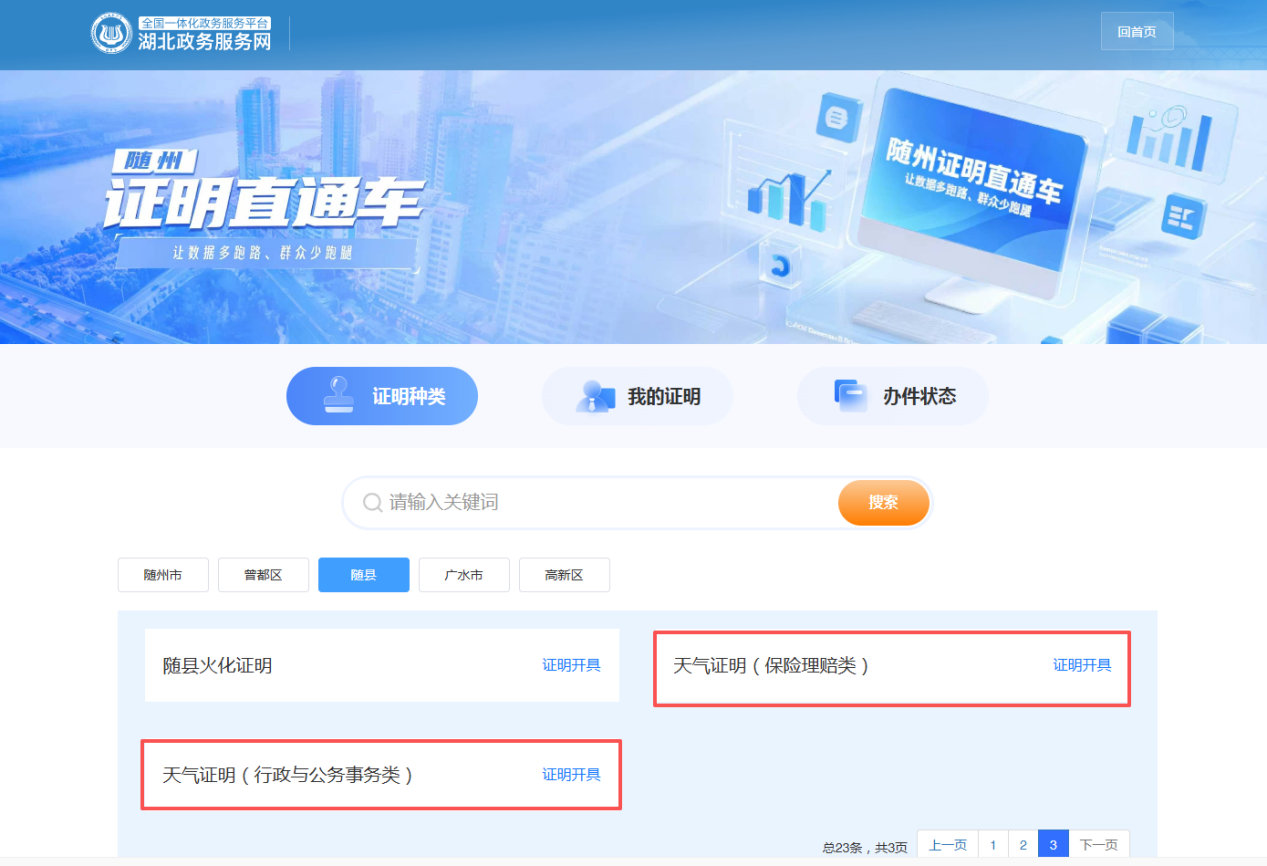 近年来,随县气象局有序开展树立和践行正确政绩观学习教育,立足企业群众“急难愁盼”,主动对接县政务服务和大数据管理局,依托“无证明城市”建设成果,将天气证明纳入湖北政务服务网—随州证明直通车证明事项。申请人登录平台完成身份认证后,即可在线生成带电子印章的天气证明,全程无需提交纸质材料、无需跑腿。