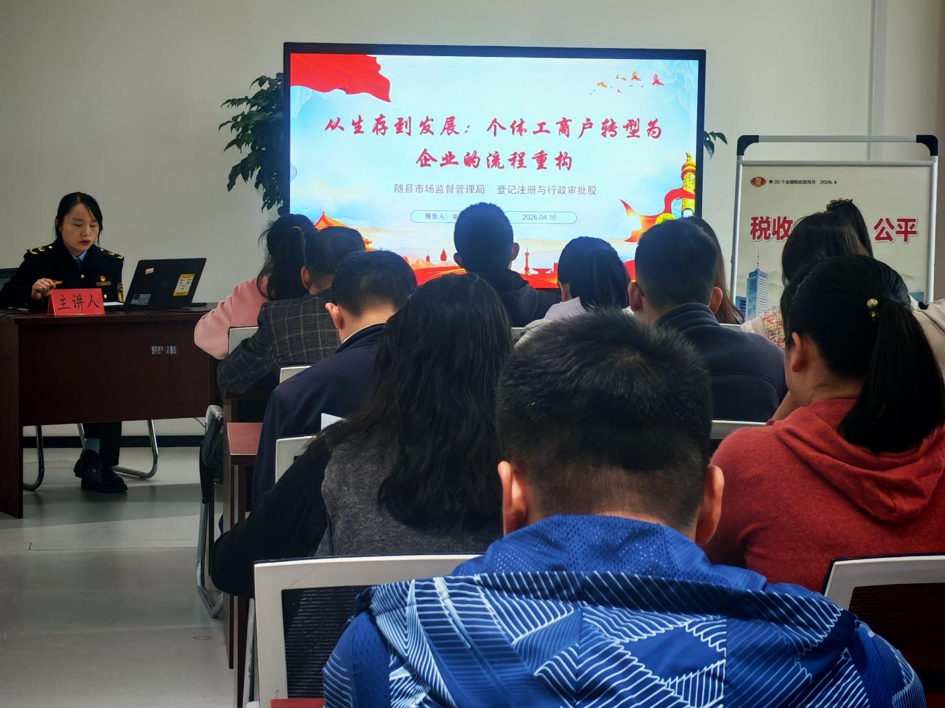个体工商户是市场经济最具活力的“毛细血管”,扎根随县大地、贴近百姓生活,在繁荣县域经济、吸纳灵活就业等方面发挥着不可替代的重要作用。从小到大、从零散到规范,不少个体工商户在经营发展中逐渐遇到瓶颈。为帮助我县个体工商户突破发展瓶颈,实现规范化、规模化发展,4月16日上午,随县市场监督管理局、随县税务局联合开展“个转企”专题培训,切实为个体工商户转型提供政策指导和服务保障。