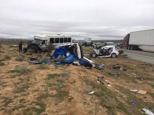 圣伯纳汀诺消防局表示,三辆车先是相撞,后来全部翻滚了至少一圈,停留在路边。