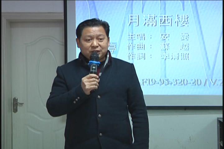 【采访】学员 李运梅:刚站上去的时候还是有点紧张的,站在那里腿发抖,四个人抱着站在一块,慢慢的心里要平衡一点,老师唱最后高音的时候用了很大的气,我们四个人站在上面板子都有往上动的感觉,老师在唱高音的时候肯定用了很大的气息,马老师的确有很大的功底,唱了这么多年,我相信跟着他肯定会学到很多的东西。