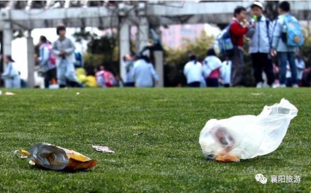 出去郊游,人们免不了要带很多吃的、玩的,就算不吃不玩,只是看看风景,那也免不了铺张报纸,小憩一下。大家一定要记得人走物离,随手把自己的垃圾带走,给别的游客留下一片好风景,体现自身的良好素养。