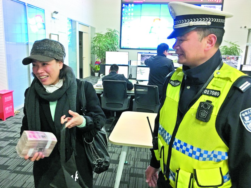 就在指挥室将此信息告诉徐波时,一名骑电动自行车的女子急匆匆地来到路口,面色慌张,急切询问徐波,“是否看到路上掉了一个黑色手提袋?”女子还告诉他,手提袋内装的是自己借来的20万元现金。徐波告诉她不要着急,“黑色手提袋在我这里。”听到此,心急如焚的她紧紧握住徐波的双手,喜极而泣。
