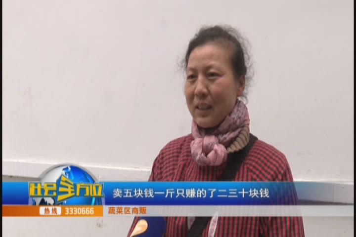【采访】蔬菜区商贩:天气暖和了蔬菜就多一些,价格就便宜一些,气温冷点或者下雨天,蔬菜就贵一些。