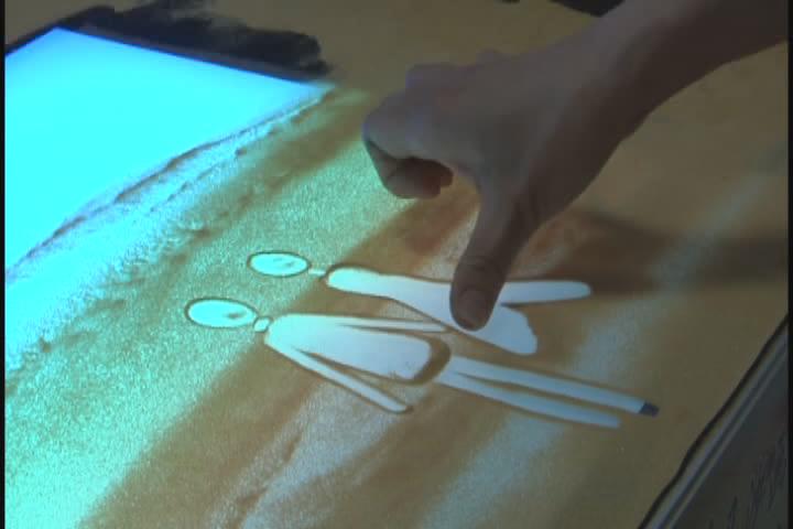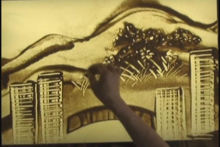(采访:朱慧玲)一个沙画师在沙画台上,用一把沙子一勾、一洒、一抹,各种画面都出来了,非常的形象,惟妙惟肖的,非常的吸引人。