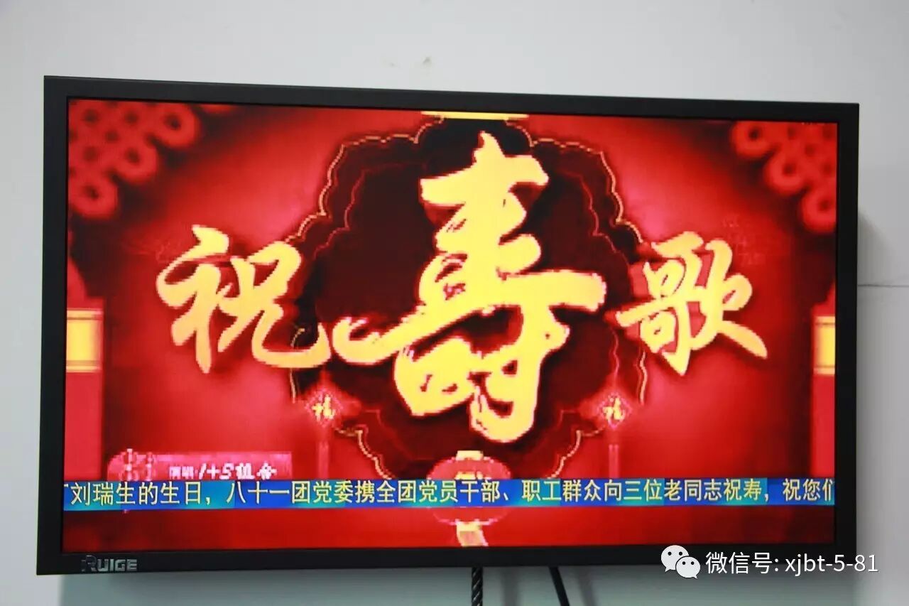 从今年4月开始,八十一团党委决定在团电视台开设《为离退休老同志生日送祝福》栏目,为全团 1500余名离退休老同志送去生日祝福语和祝福歌曲,表达全团广大干部职工群众对他们的祝愿,感谢他们为团场发展建设作出的贡献。