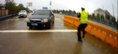 16日15时许,省高警广水大队民警黄朝杰、周雷在麻竹高速公路广水收费站执勤时,一辆悬挂号牌为鄂B3XXXX号牌黑色起亚的轿车正准备进收费站领卡,民警周雷见驾驶员上高速前未系安全带对其进行检查,驾驶员以没有携带证件为由拒绝提供。驾驶员神情紧张,环顾左右,在民警周雷不断的催促和指令下,既不把车辆熄火,也不打开车门下车。民警周雷大声呵斥驾驶员赶紧下车,在不配合的情况下强行拉开车门。驾驶员丝毫也不理会,还不停回望车后的情况,肆无忌惮倒车企图逃跑。民警黄朝杰见状迅速冲上前阻止该车,并强令其停车,阻止无效的情况下,民警黄朝杰赶紧向驾驶员喷射催泪瓦斯,但由于慌乱中没有考虑到风向,驾驶员侥幸驾车逃窜了。