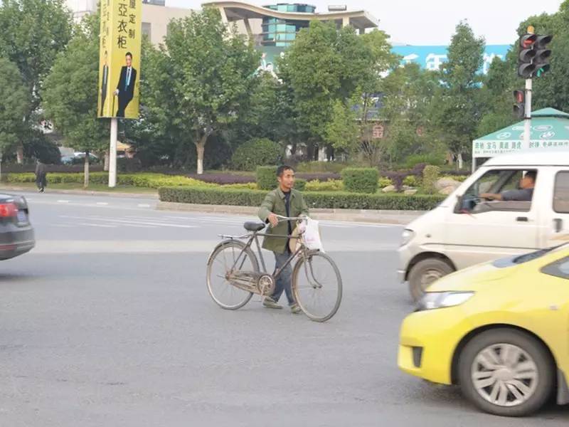 大叔骑自行车闯红灯