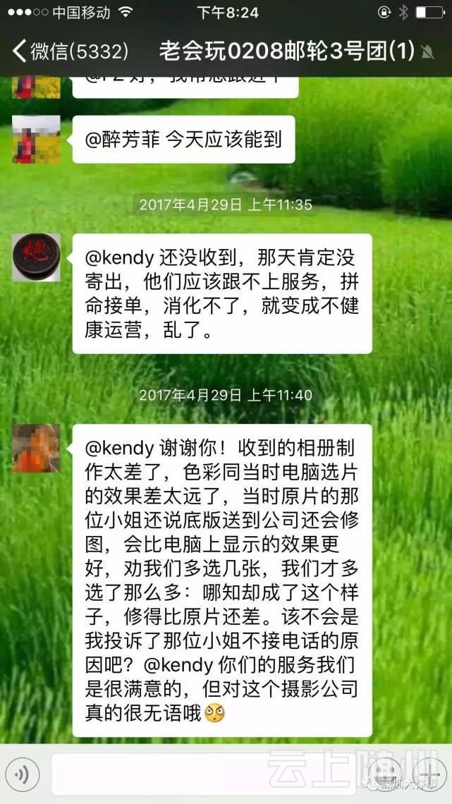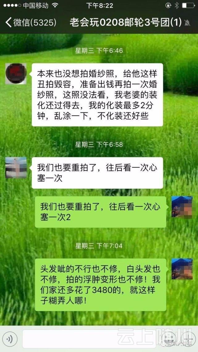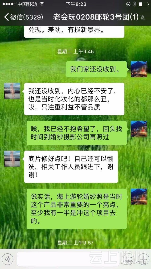 见几位游客在群里讨论相册的事,另一位女士说,“我还没收到,内心已经不安了,当时化妆化的都那么丑。”