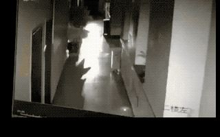 △地震发生时,塔什库尔干县供电公司办公大楼内监控记录到的画面,可以看到摆放在楼道内的绿植出现剧烈的晃动