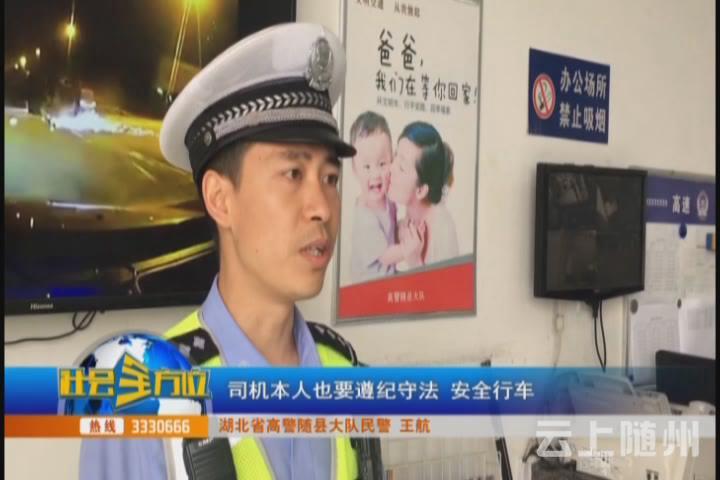 【采访】湖北省高警随县大队民警 王航:夜间开车光线比较暗 司机也容易疲劳犯困 更应该集中注意力安全驾驶 乘车人不得有妨碍司机安全驾驶的行为 司机本人也要遵纪守法 安全行车。