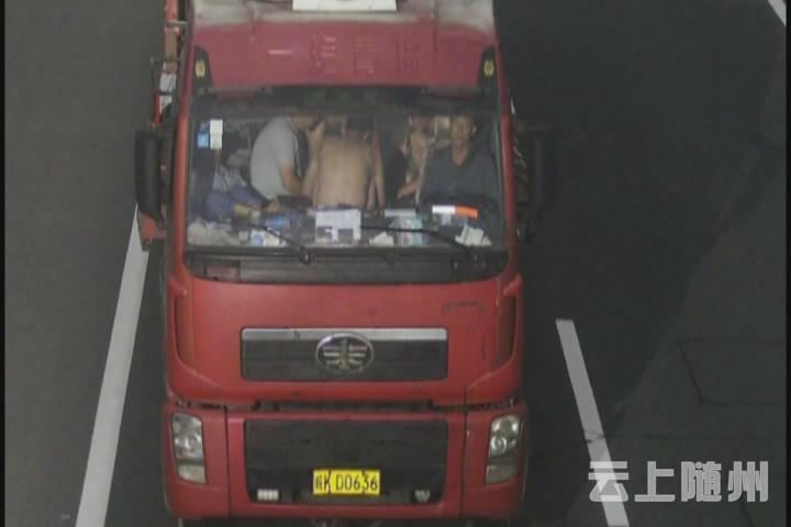 5月22日傍晚,省高警随县大队民警在鄂豫省际卡口执勤时,监控画面中的一辆安徽牌照的货车引起了民警的注意。该车是一辆重型货车,驾驶室核载3人,但是监控照片清晰地显示了该车的驾驶室内竟挤了6个人,超员达到100%,而且有四个人在狭窄的驾驶室里围成一圈,不知道在做什么,民警立即对该车进行了布控。
