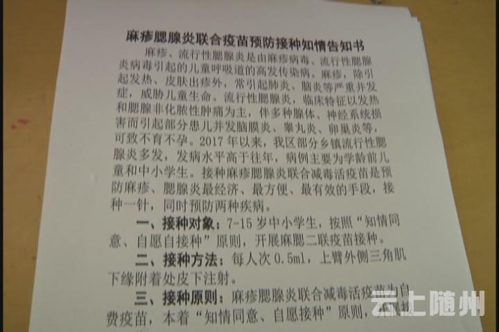 流行性腮腺炎是一种可防可控的疾病,预防接种是预防流行性腮腺炎最好的方式。近期湖北省各个地市州,流行性腮腺炎都出现高发态势,随州流行性的状况也有所提升。近期我们曾都区联防联控办公室和市疾控中心组织了,对中小学生群体性的预防性疾控,主要是筑起流行性腮腺炎的免疫屏障 有效的控制流行性腮腺炎病情的蔓延。