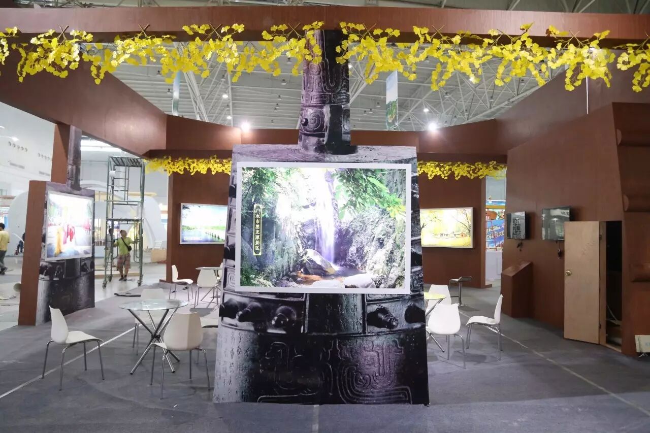 展台的正前方和左右两边分别为最具有随州旅游代表性的炎帝故里旅游景区以及编钟,通过视觉上的情景再现,让形象更加生动醒目。展台四周为随州各地知名旅游景区全景图,让远处的观众也能一目了然。