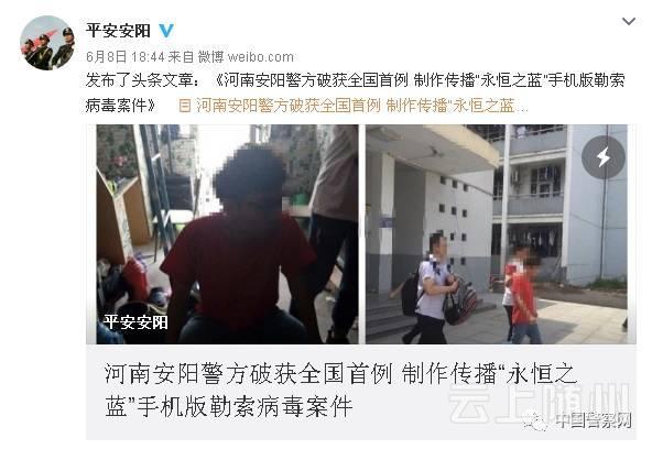 据河南安阳警方官方微博@平安安阳表示,目前已在腾讯守护者计划安全团队的协助下抓获了勒索病毒制作者: