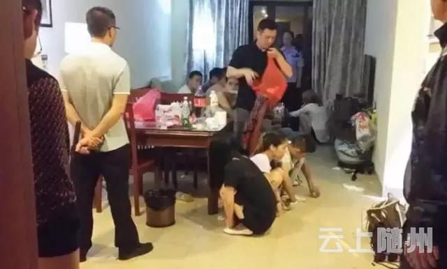 “4个女的,7个男子分别坐在沙发、台面、床上,一边扭动一边兴奋,里面场面很混乱,我们冲进去,他们还不知道发生什么事。”阳江海陵岛派出所副所长陈积傍说。经审讯,当晚嫌疑人曾某志和林某婷在市区吃完晚饭后,便商议约朋友到海陵岛租一间公寓一起吸食毒品。图为抓捕现场。