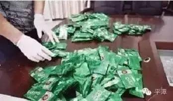 据了解,这种看似平常喝茶的小包装茶叶,其实不是真的茶叶,而是一种“奶茶”新型毒品,味道非常的香,如果冲进饮料里面喝的话,完全感觉不出是毒品。图为缴获的“奶茶”毒品。