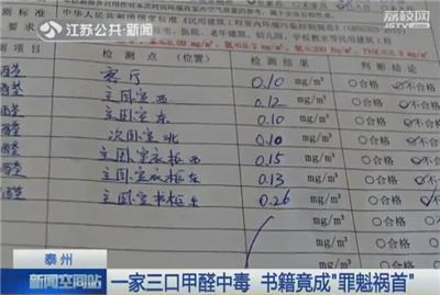 最近,泰州市质监部门在对市民家庭做空气质量免费检测时发现,一个三口之家,从去年底开始,陆续出现了甲醛中毒的现象,咳嗽、鼻炎等症状,而甲醛的来源,居然是这家的藏书。