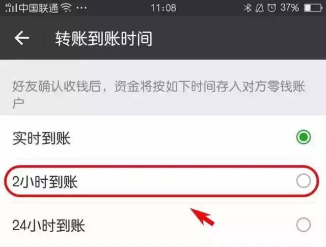 4、点击 “转账到账时间”,选择你需要到账的时间。个人建议是2小时到账,既不会显得太久,也可以在转错账的情况下及时做出相应对策。