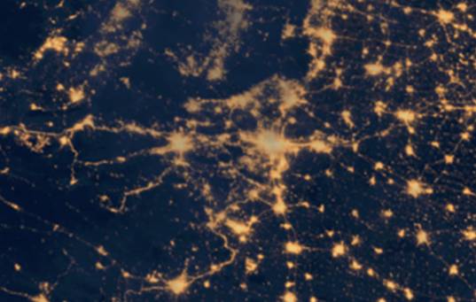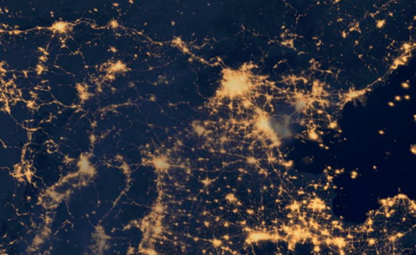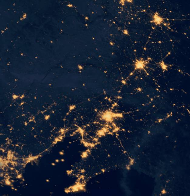 各城市群实力又如何,我们可以从NASA提供的卫星灯光图中比较一二。