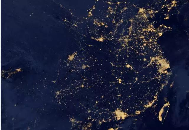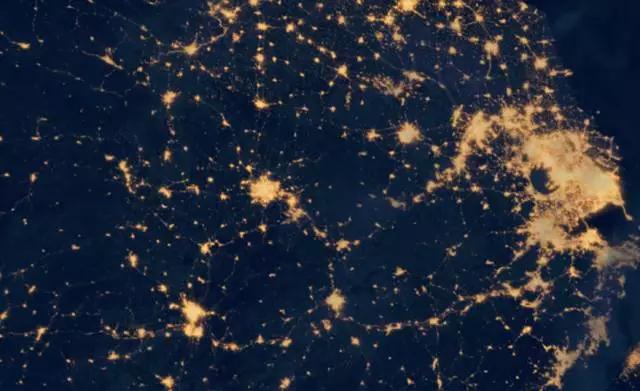 这份图上,最闪亮的两部分区域分别是珠三角和长三角,这也是中国目前最为成熟的两大城市群,而作为传统三大城市群之一的京津冀除了北京天津之外,其他都呈散点排列,至于新晋的中原等城市群,规模上还不明显。