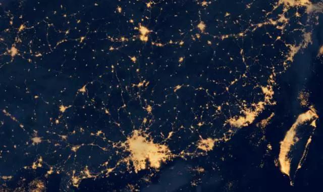 先来看珠三角,珠三角的城市灯光几乎融为一体,从广州到深圳再到香港澳门,城市的地理边界基本消失。