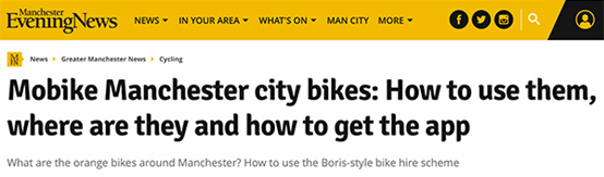 曼城当地媒体《曼彻斯特晚间新闻》则很贴心地发布了一篇题为《摩拜曼彻斯特城市单车:怎么用,在哪找,如何下载》的文章,帮助市民快速上手。