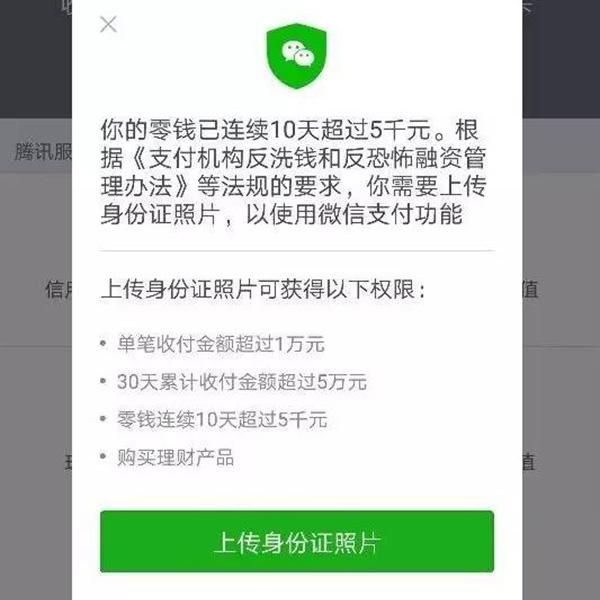 (原题为《微信零钱连续10天超五千需上传身份证》)