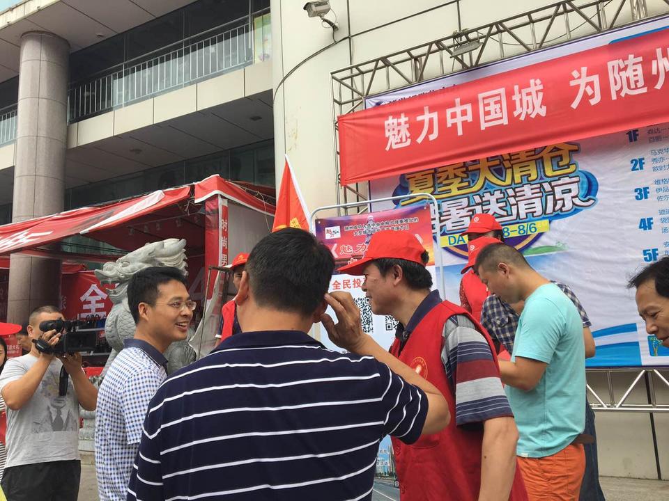 7月29日,随州市委常委、宣传部长王志勇利用休息时间到银泰新世纪购物中心、大润发广场等地看望在街头开展《魅力中国城》投票志愿活动的志愿者,与广大市民亲切交流,现场为随州投票,为随州竞演《魅力站中国城》加油。