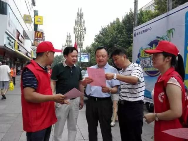 7月30日,曾都区委书记何运平与区委宣传部负责人在周末走上街头,与志愿者们一起发放宣传单,发动全区上下65万曾都人,团结一心,助力随州《魅力中国城》之行。