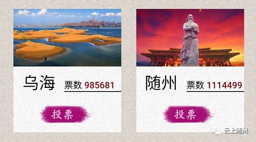 从7月27号下午突破40万票略微反超乌海,到今天下午的111万多票,不到5天的时间随州票数翻了接近三倍!!!