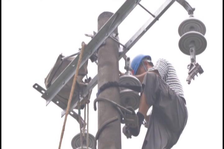 【采访】随州供电公司市区分公司抢修负责人 彭小虎 受恶劣天气影响,昨天我市城区共有4条回路,被雷击打断了线路,现在我们在对整个线路进行抢修,目前已经抢修好了擂59和平线,随73线路已经恢复供电,现在我们正在抢修的是随87石桥线,蒋两2回线路正在抢修,估计两个小时左右可以全部恢复通电。