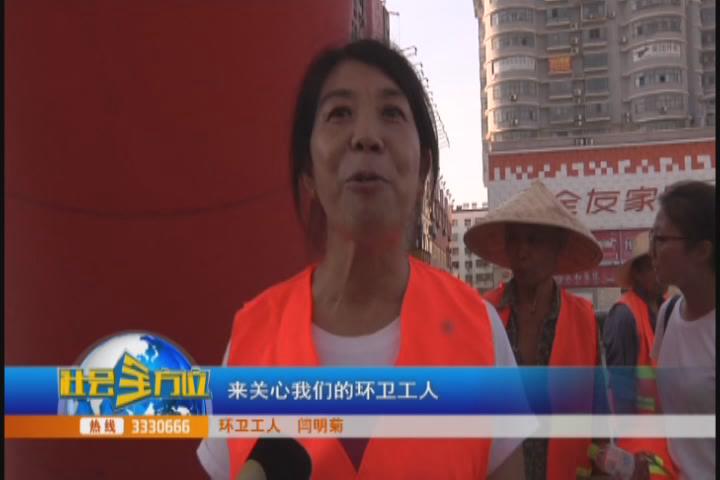 【采访】环卫工人 闫明菊 感谢京胜宏公司对我们环卫工人的关心、爱护,给我们送来凉爽,我们环卫工人虽说在高温天作业,有领导、有政府、还有我们这么优秀的企业,来关心我们这么环卫工人,就算是辛苦,也觉得是理所应该的,现在是高温酷暑的时候,环卫工人还是从早到晚一直坚守在岗位上,汗水从上班到下班都是没干过,环卫工人虽说是辛苦,但是觉得是我们的职责,也是无怨无悔的在工作岗位上做事。