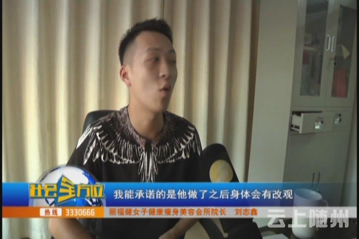 【采访】丽福健女子健康瘦身美容会所院长 刘志鑫:第一个他并没有去按照说明使用,正常的使用,那第二个呢,因为我是做这个行业的,对医疗有一部分的了解,我没有去承诺,他半年或者是几个月能够站起来,我能承诺的是他做了之后身体会有改观,因为这是一个辅助设备,就跟一个跑步机一样的,然后电子产品,而且我们商标注册的不是医疗设备,所以可能购买者他的主要的问题矛盾就是在使用了半年之后,他的妻子并没有站起来,走路,然后和他理想中的有偏差。
