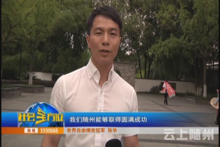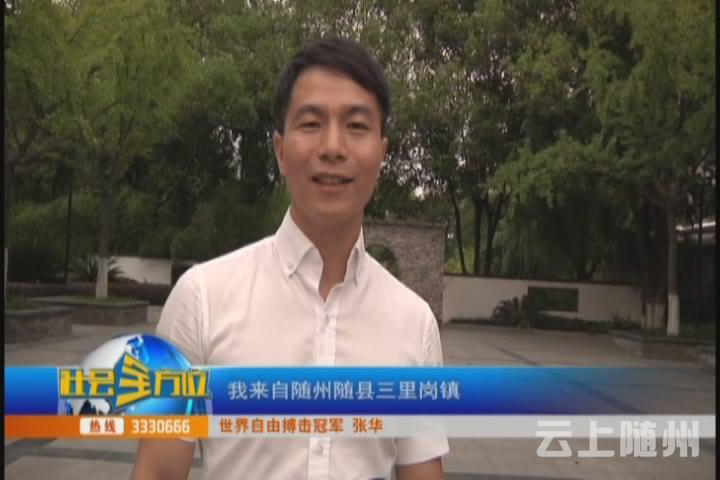 【采访】世界自由搏击冠军 张华:大家好我是张华,我来自随州随县三里岗镇,非常荣幸能够接受随州电视台的采访,前几天呢我得知我们随州现在正在参加魅力中国城城市评选活动,在这里我希望大家踊跃的为我们的随州加油,衷心的预祝本次评选活动,我们随州能够取得圆满成功。