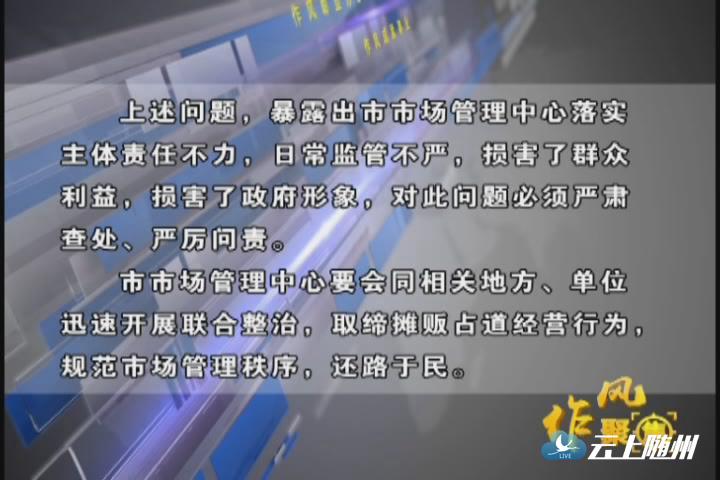 对上述违规问题,市干部作风能力“提升工程”暗访组已责令市市场管理中心深入调查。