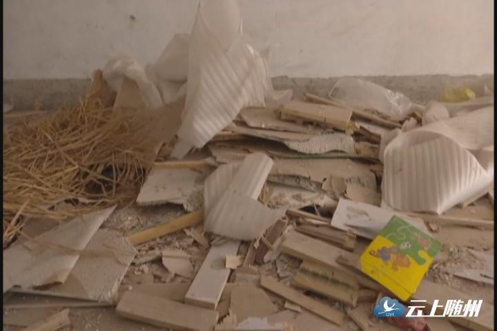 【采访】程先生:我们觉得很奇怪,第二天我们就来看了,进去之后里面全是杂物,里面什么样的东西都有,小孩的自行车玩具垃圾什么的,两台麻将桌,还有装修用的门窗之类的,锯末,地上厚厚的一层灰。