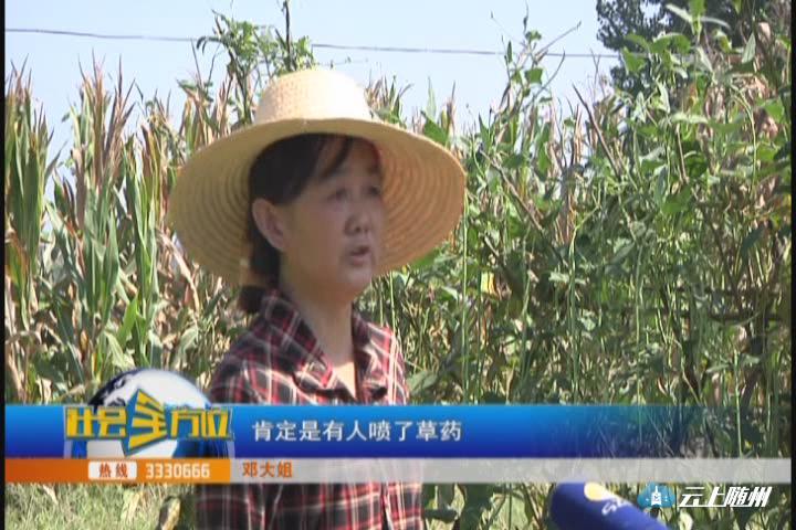 (采访:邓大姐)豇豆刚刚开花的时候,就发现这个叶子变黄了,正常情况下,豇豆儿快结完了的时候,叶子就开始枯,豇豆还在结,它的叶子就枯黄了,肯定是有人喷了草药。