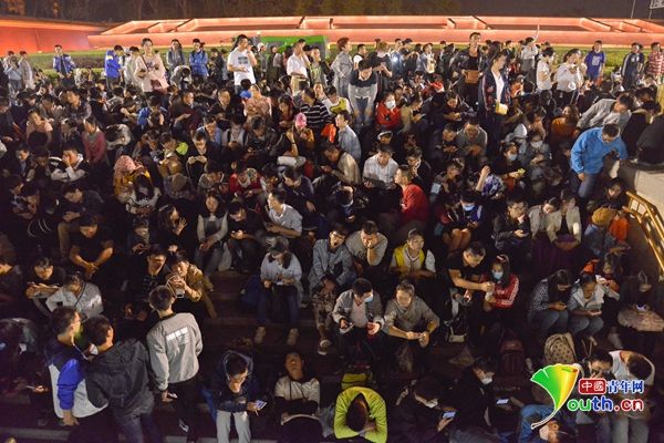 许多本不相识的男女青年在等候期间也成为了朋友,图为游客们围圈而坐后进行互动。 中国青年网记者李永鹏摄