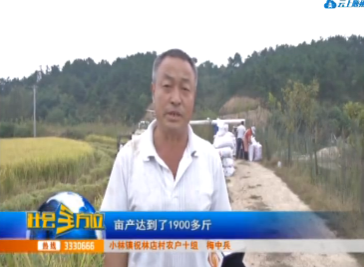 小林镇大坡岭村五组村民候中全:去年这块田打了一千二三百斤,今年打了1700多斤,这个种子比较满意,种的还可以。